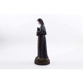 Imagem Santa Rita Resina 32 cm Santa Rita, também conhecida como Santa dos Impossíveis. Possuía um estigma em sua testa. Dimensões: altura: 32 cm - Largura: 12 cm - Profundidade: 11 cm Dimensões aproximadas do produto. Produto pintado a mão, podendo sofrer variações de cores. Marca: Não Informado