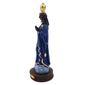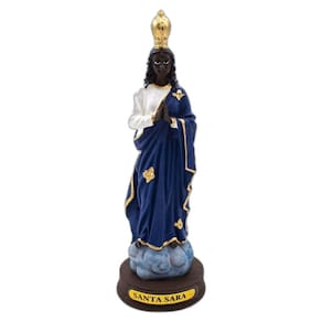 Imagem Santa Sara Resina 14 cm Santa Sara de Kali, padroeira do povo cigano, das mulheres que querem engravidar, do bom parto, dos exilados e dos desesperados. Dimensões: altura: 14 cm - Largura: 5 cm - Profundidade: 5 cm Dimensões aproximadas do produto. Produto pintado a mão, podendo sofrer variações de cores. Marca: Não Informado