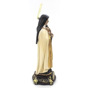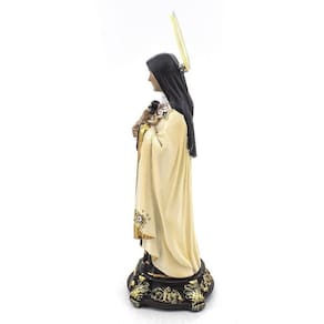Imagem Santa Terezinha Importada Resina 15 cm Santa Teresinha do Menino Jesus e da Sagrada Face, nascida em Alençon França , também é venerada e representada como a Santa das Rosas. Dimensões: altura: 15 cm - Largura: 5 cm - Profundidade: 5 cm Dimensões aproximadas do produto. Produto pintado a mão, podendo sofrer variações de cores. Marca: Não Informado