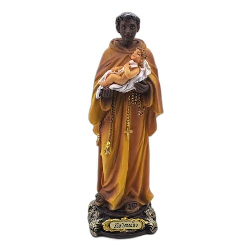 Imagem São Benedito Resina 15cm São Benedito, conhecido como santo protetor dos cozinheiros e intercessor contra a fome, foi instrumento de Deus para a realização de vários milagres. Dimensões: altura: 15 cm - Largura: 5 cm - Profundidade: 5 cm Dimensões aproximadas do produto. Produto pintado a mão, podendo sofrer variações de cores. Marca: Não Informado