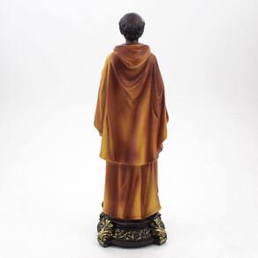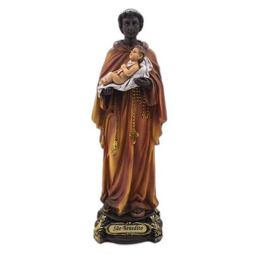 Imagem São Benedito Resina 20 cm São Benedito, conhecido como santo protetor dos cozinheiros e intercessor contra a fome, foi instrumento de Deus para a realização de vários milagres. Dimensões: altura: 21 cm - Largura: 8 cm - Profundidade: 7 cm Dimensões aproximadas do produto. Produto pintado a mão, podendo sofrer variações de cores. Marca: Não Informado