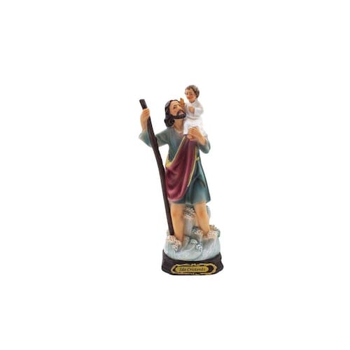 Imagem São Cristóvão Importada Resina 23 cm São Cristóvão é considerado o padroeiro dos motoristas e viajantes. Dimensões: altura: 23 cm - Largura: 10,5 cm - Profundidade: 7,5 cm Dimensões aproximadas do produto. Marca: Amém Decoração Religiosa Ean: 6988021620237