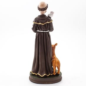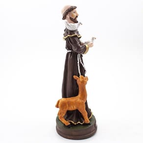 Imagem São Francisco Resina 21 cm São Francisco é o santo protetor dos animais. Dimensões: altura: 21 cm - Largura: 9,5 cm - Profundidade: 7,5 cm Dimensões aproximadas do produto. Produto pintado a mão, podendo sofrer variações de cores. Marca: Não Informado
