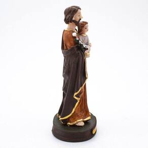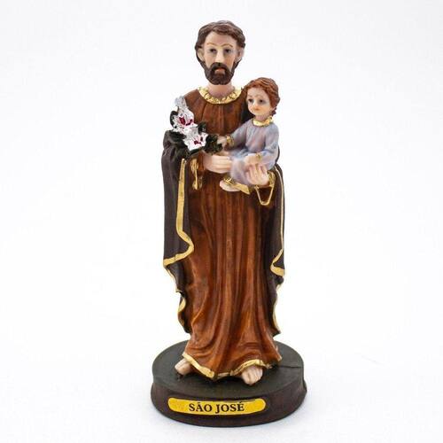 Imagem São José Resina 15 cm São José, do hebraico Yosef, do latim Losephus, é esposo da Virgem Maria e pai adotivo de Jesus. É considerado Padroeiro dos Trabalhadores e Padroeiro das Famílias. Dimensões: altura: 15 cm - Largura: 6 cm - Profundidade: 5,5 cm Dimensões aproximadas do produto. Produto pintado a mão, podendo sofrer variações de cores.