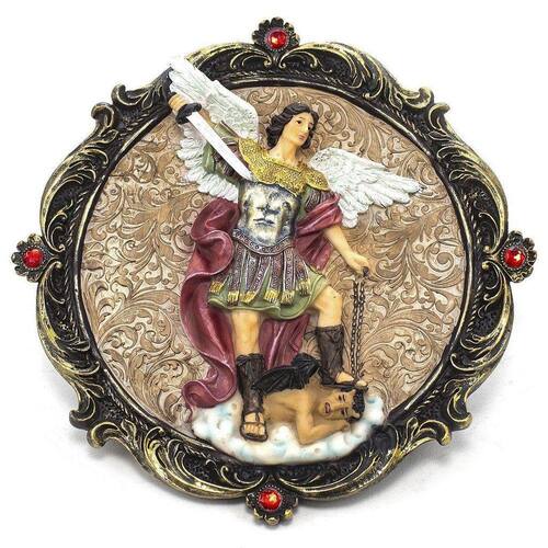 A Imagem São Miguel Arcanjo Capela Parede é uma peça importada de resina com altura de 24 cm, largura de 24 cm e profundidade de 3 cm. Essa belíssima representação do arcanjo Miguel é perfeita para decorar sua parede e trazer proteção para o ambiente.