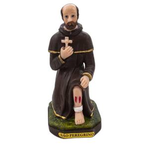 Imagem São Peregrino Resina 13 cm Peregrino Laziosi ou São Peregrino é considerado o santo padroeiro dos pacientes com câncer, por conta de ter sido vítima de um terrível câncer na perna esquerda e foi curado milagrosamente um dia antes de sua perna ser amputada pelos medicos. Dimensões: altura: 12,5 cm - Largura: 5,5 cm - Profundidade: 7 cm Dimensões aproximadas do produto. Produto pintado a mão, podendo sofrer variações de cores. Marca: Não Informado