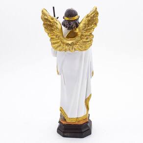 Imagem São Rafael Arcanjo Importada Resina 20 cm Arcanjo, do latim archangelus é o anjo principal ou anjo da mais alta ordem a oitava na hierarquia celeste. Segundo a mesma Bíblia os arcanjos são sete mas apenas três São mencionados: Miguel, Rafael e Gabriel.Rafael, é um arcanjo nas doutrinas religiosas cristãs, judaicas e islâmicas. Os católicos, anglicanos, ortodoxos e luteranos se referem a ele como São Rafael Arcanjo ou simplesmente como São Rafael. Seu nome significa Deus cura. É responsável por executar todos os tipos de cura física, psíquica ou espiritual . tobias 12, 14-15 Os outros podem servir como referência, mas não são doutrina. - Ariel, Azrael, Chamuel e Jofiel.Dimensões: altura: 20 cm - Largura: 8 cm - Profundidade: 6 cmDimensões aproximadas do produto. Marca: Amém Decoração Religiosa