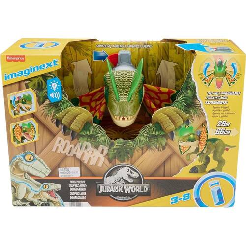 Os jovens fãs do Jurassic World podem reviver momentos épicos de filmes e imaginar novas histórias próprias com este brinquedo de dinossauro Dilophosaurus Imaginext Thrash Attack extragrande da Fisher-Price. As crianças controlam toda a ação feroz deste dinossauro, que ruge para a vida com luzes incríveis, sons, babados expansíveis e ação de cuspir de lançamento de projéteis, assim como nos filmes Com mais de 16 polegadas de altura, este dinossauro Dilophosaurus se eleva sobre sua presa e inspira uma grande brincadeira imaginativa do Jurassic World para crianças em idade pré-escolar. Requer 3 pilhas AA, incluídas. As cores e decorações podem variar.