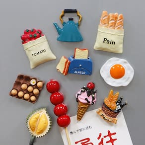 Material: Resina Peso: 45 g Design de comida deliciosa: inclui 12 ímãs com tema gastronômico, com pizza, sorvete, chocolate, bolinhos e muito mais, oferecendo uma maneira divertida e criativa de mostrar suas comidas favoritas. Resina de alta qualidade: feitos de resina durável, esses ímãs alimentares vibrantes e realistas são projetados para replicar seus itens favoritos de café da manhã e lanche. Perfeito para amantes de comida: ideal para quem gosta de decoração com tema gastronômico, perfeito para adicionar um toque divertido a cozinhas, escritórios ou armários. Decorativos e funcionais: esses ímãs não são apenas decorativos, mas também funcionais, guardando com segurança fotos, notas e pequenas lembranças em superfícies magnéticas. Único e divertido: uma ótima maneira de celebrar a cultura alimentar, este conjunto é uma adição criativa a qualquer cozinha ou espaço de escritório.