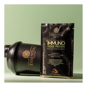 Immuno Veggie Pro-Glutathione da Essential é uma opção vegana indicada para todos que desejam ampliar os benefícios da proteína vegetal. A formulação com um mix de proteínas vegetais disponibiliza um completo perfil de aminoácidos e nutrientes que possuem propriedades nutricionais já comprovadas na imunidade e na síntese de substâncias importantes para o organismo - como, por exemplo, a glutationa.