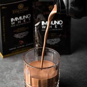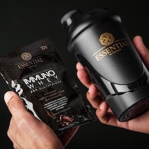 Immuno Whey Pro Glutathione Sachê 31g Immuno Whey Pro Glutathione lata 31g Essential Nutrition Ao Whey Protein Isolado e Hidrolisado, adicionamos os aminoácidos - cisteína, glicina e glutamina - precursores da glutationa, além das vitaminas e minerais, cofatores nesse processo de síntese. Para deixar a fórmula ainda mais completa, incluímos a taurina, a vitamina C e mix de tocoferóis, que potencializam o poder antioxidante do produto, além da betaglucana de levedura beta - 1,3/1,6 glucan , conhecida por seus importantes benefícios. Contém: Whey Protein Hidrolisado e Isolado Thermax 690 e Provon 292 Aminoácidos precursores da produção natural de glutationa cisteína, glicina e glutamina Vitaminas e minerais, cofatores na produção natural de glutationa Taurina Purified beta - 1,3/1,6 glucan Puro cacau Estévia não Contém: Proteínas concentradas Caseína Açúcar Glúten Lactose Conservantes Adoçantes artificiais Aromas artificiais Corantes artificiais Potencializamos os efeitos do whey protein. O whey protein por si só já é considerado o suplemento com a maior capacidade de estímulo da produção de glutationa no corpo. Quando adicionamos os nutrientes necessários para este processo de síntese, conseguimos potencializar ainda mais esta produção, e assim aumentar significativamente os níveis de glutationa no organismo. Glutationa: O mais importante antioxidante do nosso corpo. A principal função da glutationa é minimizar os danos causados pelo excesso de radicais livres no nosso corpo. Seus níveis podem ser considerados um bom indicador fisiológico, no entanto, ao longo dos anos a capacidade do nosso corpo de produzir glutationa diminui. Cisteína + glutamina + glicina: A glutationa é produzida a partir de nutrientes específicos: aminoácidos que formam a sua estrutura cisteína, glutamina e glicina , vitaminas e minerais que participam das reações complementares durante o seu processo de síntese vitamina B2, magnésio e selênio .