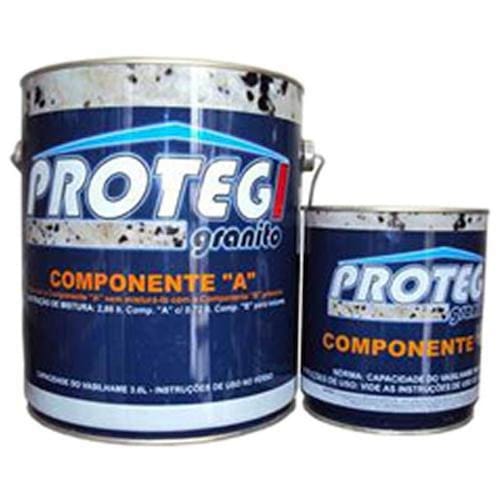 Protegi Granito R é a solução definitiva para proteção e impermeabilização de pisos de granitos e mármores sendo uma das poucas soluções que possuem histórico de sucesso em milhares de metros quadrados aplicados.De fácil e simples aplicação, Protegi Granito R não necessita de mão de obra especializada e seu sucesso não para de crescer no mercado. Protegi Granito R é patenteado, produto único no mercado, com mais de 20 anos de existência e de aplicações bem sucedidas.O único com garantia de 10 anosINDICAÇÕES:Resina de alta resistência química, abrasão e água. Destina-se a aplicação em pedras naturais como Granito e Mármore para proteção e impermeabilização sob a superfície.INFORMAÇÕES PRÁTICAS:Cor....................................: TransparenteSólidos por volume.....: 30 por centoEspessura seca.............: 25 micrômetros por demão, equivalentes a 83 micrômetroRendimento teórico....: 18 a 20 m2/kit Componente A + Componente B , baseado na espessura seca de 25 micrômetros.Rendimento prático....: Deduzir do rendimento teórico os percentuais relativos à perdas estimadas paraCondição específica da pintura.Estocagem.....................: Guardar em local seco, abrigado e ventilado até 12 mesesPonto de fulgor............: Maior que 30ºCTIPOS DE PEDRAS:Granitos e mármores claros e escuros CARACTERÍSTICA DA RESINA:Resina bi componente insaponificável, elevada resistência química à abrasão e a água. 32 por cento SV, 78 EFU e 25 EFS, VOC= 580g/litroEMBALAGEMLata maior:Diâmetro: 16,70 cmAltura: 18 cmCapacidade 3.6 LConteúdo: 2.8 LPeso total: 3.75 KgLata menor:Diâmetro: 10,70 cmAltura: 11,50 cmCapacidade 900 mlConteúdo: 720 mlPeso total: 820 gMedidas da Caixa:Largura: 20 cmComprimento: 30 cmAltura: 20 cmPeso da embalagem de papelão: 240 gPeso total incluindo o peso da caixa: 4.81 Kg Marca: Protegi Impercia