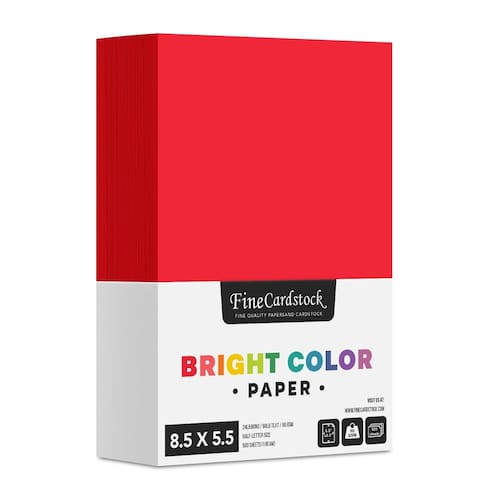 Estes papéis coloridos brilhantes são feitos de papel Bond de 24 libras/60 lb de texto/90 GSM. Cada folha mede 8,5 x 5,5 polegadas (tamanho de meia letra).