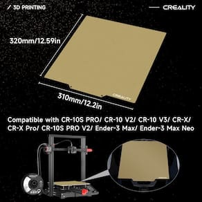 Creality Ender 3 Max Neo Bed Upgrade, PEI Sheet 310 x 320 mm Superfície magnética removível com textura flexível superfície aquecida para cama CR-10S PRO/ CR-10 V2/ CR-10 V3/ CR-X/ CR-X Pro/ Ender-3 Max - ?Garantia de qualidade?Impressora Creality 3D 100% oficial Folha PEI 310 x 320 mm removível magnética flexível textura plataforma de cama aquecida. A superfície PEI dourada tem forte estabilidade a altas temperaturas, retardante de chama, resistência ao calor, alta resistência, resistência ao desgaste e boa estabilidade de impressão. - ?Ampla aplicação?Compatível com PLA/PETG/PEEK/ABS e quaisquer outros filamentos. A base de impressora 3D de chapa de aço de mola de 310 x 320 mm funciona bem com CR-10S PRO/ CR-10 V2/ CR-10 V3/ CR-X / CR-X Pro/CR-10S PRO V2/ Ender-3 Max/ Ender-3 Max Neo e outras camas do mesmo tamanho. - ?Ótima aderência e fácil de segurar?Moldes de impressão diretamente na superfície de textura fosca da placa PEI. Sem fita, sem cola, libere sua ansiedade de impressão. Com uma placa de folha PEI de impressão magnética, você só precisa removê-la da cama e dobrá-la, então o molde pode ser removido. Quando você solta, elas voltam à forma e não quebram facilmente. Não há necessidade de arranhar, erguer e danificar suas impressões! - ?Instalação simples?Nossa chapa de aço PEI é fácil de instalar e o tempo de instalação é inferior a 2 minutos. Basta colocar a superfície adesiva inferior 3M em cima da cama sem aquecimento. A placa PEI de aço pode ser ligada magneticamente ao adesivo magnético. - ?Suporte pós-venda?Fornecemos serviço pós-venda profissional. (vendedor) via "faça uma pergunta" e encontre-nos diretamente, pois nosso atendimento ao cliente responderá a você dentro de 24 horas, não importa qual seja a pergunta.