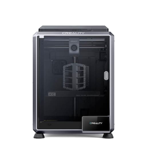 A Creality K1C é uma impressora 3D de alta velocidade com estrutura totalmente metálica fechada com um bico trimetálico e com mesa flexível, perfeita para quem precisa imprimir peças com filamentos reforçados com fibra de carbono em pouco tempo.