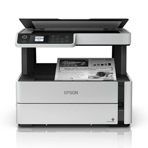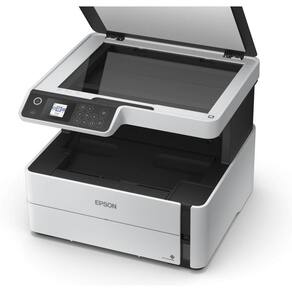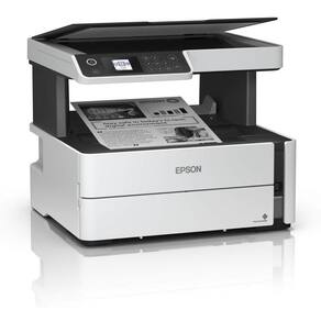A multifuncional Epson EcoTank M2170 é um modelo de última geração, que conta com a exclusiva tecnologia Precision Core em sua cabeça de impressão, proporcionando impressões mono com qualidade laser, porém com a máximo rendimento dos tanques de tinta EcoTank, gerando economia de até 90% em comparação com as impressoras a laser. Com conectividade wireless e função duplex, a M2170 possui excelente relação custo-benefício na impressão de documentos com rapidez e alta resolução e nitidez. A EcoTank M2170 chega a imprimir até 39 páginas por minuto, além de contar com duplex automático, imprimindo frente e verso da folha, melhorando a produtividade e reduzindo o consumo de papel na empresa. A M2170 possui resolução máxima de impressão de 1200 x 2400 dpi, proporcionando imagens e textos com máxima nitidez, mesmo em fontes pequenas. A M2170 possui bandeja com capacidade para 250 folhas A4, e é compatível com papéis com acabamentos especiais, como papel fosco, brilhante, e auto-adesivo. Com o sistema de tanque de tinta EcoTank, a multifuncional Epson M2170 é capaz de imprimir até 11.000 páginas com as duas garrafas de tinta já inclusas com o equipamento. Além disso, a M2170 possui scanner de base plana, com resolução máxima de 1200 x 2400 dpi. Com a conectividade wireless é possível enviar o arquivo digitalizado diretamente para o seu notebook ou smartphone. Além de seu design moderno, a M2170 possui conectividade Wi-Fi Direct, que permite a utilização através de notebook, tablet ou smartphone, sem a necessidade de roteador ou acesso à internet.