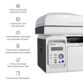 A M6559WN Pantum é compacta e rápida para impressões. Com ela você também poderá digitalizar documentos e fazer cópias. Possui ainda entrada para USB e a tecnologia Wi-fi que permite vários computadores, notebooks, celulares e tablets conectados em sua multifuncional e imprimindo sem o uso de cabos. Ean: 6936358017831