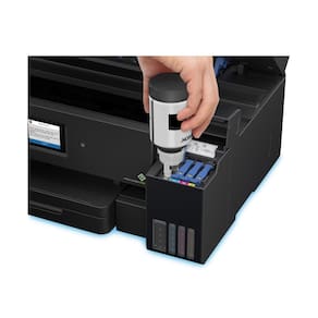 A nova multifuncional wireless EcoTank L14150 4-em-1 imprime em formatos até A3+. Suas garrafas de tinta são projetadas para evitar desperdício; e codificadas para você abastecer os tanques de forma fácil. Permite imprimir até 7.500 páginas em preto ou 6.000 páginas coloridas.