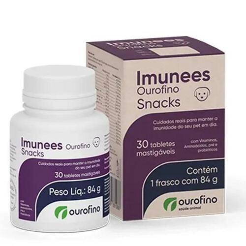 Imunees Snacks Cães 30 Tabs Mastigativeis Imunidade Pet - Ourofino PetImunees Snacks Cães 30 Tabs Mastigativeis Imunidade Pet - Ourofino PetImunees Ourofino Snacks é um suplemento alimentar em forma de tablete mastigável altamente palatável formulado com Aminoácidos, Vitamina C e Vitamina D3, Betaglucanas e MOS, indicado no auxílio do sistema imunológico de cães em todas as fases da vida.Modo de usar: Fornecer 1 tablete para cada 10 kg de peso corporal diretamente na boca do animal uma vez ao dia.