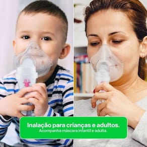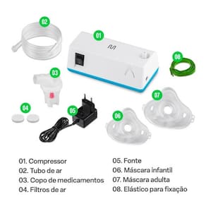 Marca: Multi Saude Modelo: Inalador Compressor Bivolt Neb Air Multi Saude - HC068 Cor principal: Branco Voltagem: Bivolt, 220V, 127V Dimensoes do produto: -LxAxC-: 15cm x 10cm x 20cm Conteudo da Embalagem: Acompanha: 2 mascaras -adulto e infantil-, 1 bocal, 1 elastico para fixacao, 2 filtros, 1 copo de medicacao, 1 tubo de ar e 1 fonte de alimentacao. Garantia: 4 anos