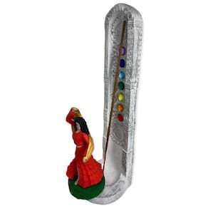 O Incensário 7 Chakras Cigana da Bialluz é perfeito para quem gosta de um design clássico e minimalista Tem um tamanho maravilhoso que cabe em qualquer mesa ou estante. É ideal para utilizar com o incenso vareta tradicional que exala uma fragrância muito agradável. O nosso Incensário conta com uma linda mini estatueta de em sua base, que trará bons fluídos e paz para o seu ambiente.x000d