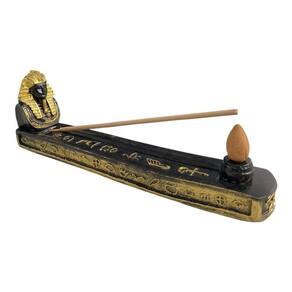 Incensário Bastet Anúbis Tutankamon Isis 24cm - Escolha Seu Cor: Tutankamon Preto e Dourado Incensário Egípcio Canaleta 24 cm Preto e Dourado em Resina - Escolha entre os modelos disponíveis no anúncio: