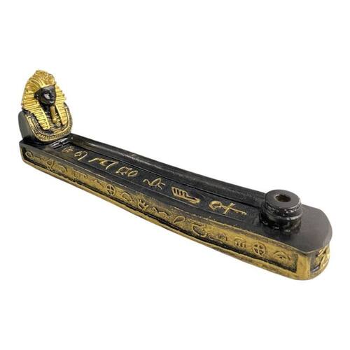 Incensário Bastet Anúbis Tutankamon Isis 24cm - Escolha Seu Cor: Tutankamon Preto e Dourado Incensário Egípcio Canaleta 24 cm Preto e Dourado em Resina - Escolha entre os modelos disponíveis no anúncio: