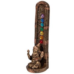 O incensário possui 7 pedras representando as cores de cada chakra, com o porta incenso na vertical e uma estátua Ganesha. Indicado para locais de medição, prática de yoga e decoração de ambientes internos em geral.