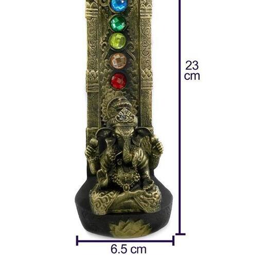 O incensário possui 7 pedras representando as cores de cada chakra, com o porta incenso na vertical e uma estátua ganesha. Indicado para locais de medição, prática de yoga e decoração de ambientes internos em geral.