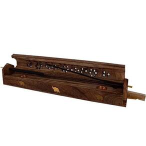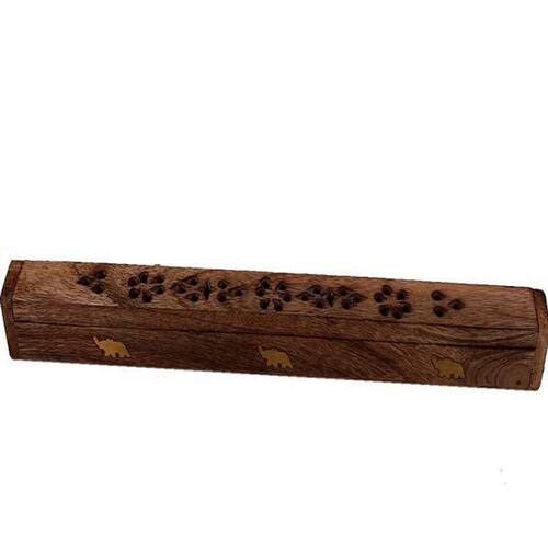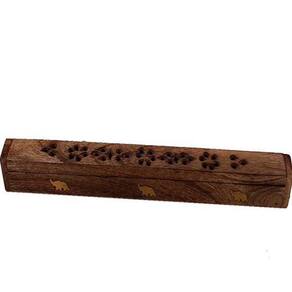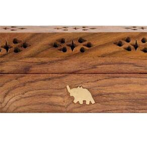 Incensário de madeira box com desenho de elefante na cor dourada em cobre embutido na madeira. Possui desenho perfurado para que a fumaça e o aroma do incenso circulem perfeitamente, acalmando.O incensário tem um espaço discreto, uma abertura lateral para que você possa deixar seus incensos guardados ali mesmo, dentro do incensárioEste Porta Incenso decorativo também pode ser utilizado para atrair boas energias e auxiliar nas práticas de meditação e yoga.EspecificaçõesAltura: 5 cm.Largura: 4cm.Comprimento: 30cm.Material: MadeiraOrigem: ÍndiaReceba o seu Incensário Porta Incenso 2 em 1 e Boas EnergiasNAMASTÊTUDO DE OHM Marca: Mana Om By Ello