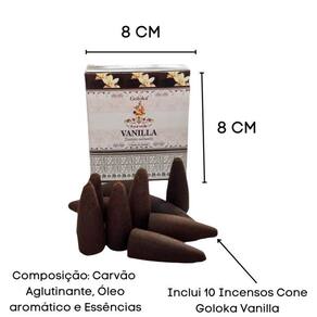 Incenso Cascata Goloka Vanilla Baunilha 120 Unidades Incenso Cascata Goloka Vanilla Baunilha 120 Unidades Este Kit de incenso da Bialluz, contém 12 caixinha com 10 incensos cones Vanilla Back Flow Fabricação em massala - origem: Índia. Caixinha contém 10 cones refluxo Composição: carvão aglutinante, varetas de bambu, óleo aromático de sândalo e essências. Como usar: Mantenha o incensário afastado de correntes de ar ou vento se não a fumaça não irá se movimentar corretamente.Acenda a ponta do incenso goloka até ele ficar avermelhado em brasa e a fumaça sair por baixo do incenso.Após isso coloque o incenso no incensário e ele queimará por até 20 minutos. Enviamos o seu produto em até 24 horas após a confirmação de pagamento Caso tenha alguma dúvida nos mande mensagem que respondemos rapidinho para te ajudar da melhor forma possível Marca: Meta Atacado