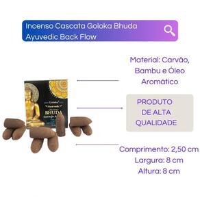 Incenso Cone Cascata Goloka Back Flow - Selecione o Aroma Cor: Buda Agarwood Incenso Cone Cascata Goloka Back Flow - Selecione o Aromax000D Conteúdo da embalagem: uma caixinha com 10 incensos cones tradicional.x000d Fabricação em massala - origem: Índia.x000d x000d Escolha um Aroma disponíveis na opção COR do próprio anúncio.x000d x000d Caixinha contém 10 cones refluxox000D x000d Composição: carvão aglutinante, varetas de bambu, óleo aromático de sândalo e essências.x000d x000d Como usar: x000D Mantenha o incensário afastado de correntes de ar ou vento se não a fumaça não irá se movimentar corretamente.x000d Acenda a ponta do incenso goloka até ele ficar avermelhado em brasa e a fumaça sair por baixo do incenso.x000d Após isso coloque o incenso no incensário e ele queimará por até 20 minutos.x000d x000d Enviamos o seu produto em até 24 horas após a confirmação de pagamentox000D x000d Caso tenha alguma dúvida nos mande mensagem que respondemos rapidinho para te ajudar da melhor forma possível Marca: Bialluz