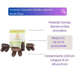 Incenso Cone Cascata Goloka Back Flow - Selecione o Aroma Cor: Jasmim Back Flow Incenso Cone Cascata Goloka Back Flow - Selecione o Aromax000D Conteúdo da embalagem: uma caixinha com 10 incensos cones tradicional.x000d Fabricação em massala - origem: Índia.x000d x000d Escolha um Aroma disponíveis na opção COR do próprio anúncio.x000d x000d Caixinha contém 10 cones refluxox000D x000d Composição: carvão aglutinante, varetas de bambu, óleo aromático de sândalo e essências.x000d x000d Como usar: x000D Mantenha o incensário afastado de correntes de ar ou vento se não a fumaça não irá se movimentar corretamente.x000d Acenda a ponta do incenso goloka até ele ficar avermelhado em brasa e a fumaça sair por baixo do incenso.x000d Após isso coloque o incenso no incensário e ele queimará por até 20 minutos.x000d x000d Enviamos o seu produto em até 24 horas após a confirmação de pagamentox000D x000d Caso tenha alguma dúvida nos mande mensagem que respondemos rapidinho para te ajudar da melhor forma possível Marca: Bialluz Marca: Bialluz