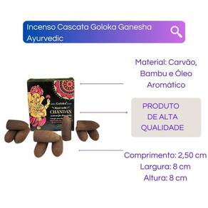 Incenso Cone Cascata Goloka Back Flow - Selecione o Aroma Cor: Ganesha Chandan Incenso Cone Cascata Goloka Back Flow - Selecione o Aromax000D Conteúdo da embalagem: uma caixinha com 10 incensos cones tradicional.x000d Fabricação em massala - origem: Índia.x000d x000d Escolha um Aroma disponíveis na opção COR do próprio anúncio.x000d x000d Caixinha contém 10 cones refluxox000D x000d Composição: carvão aglutinante, varetas de bambu, óleo aromático de sândalo e essências.x000d x000d Como usar: x000D Mantenha o incensário afastado de correntes de ar ou vento se não a fumaça não irá se movimentar corretamente.x000d Acenda a ponta do incenso goloka até ele ficar avermelhado em brasa e a fumaça sair por baixo do incenso.x000d Após isso coloque o incenso no incensário e ele queimará por até 20 minutos.x000d x000d Enviamos o seu produto em até 24 horas após a confirmação de pagamentox000D x000d Caso tenha alguma dúvida nos mande mensagem que respondemos rapidinho para te ajudar da melhor forma possível Marca: Bialluz