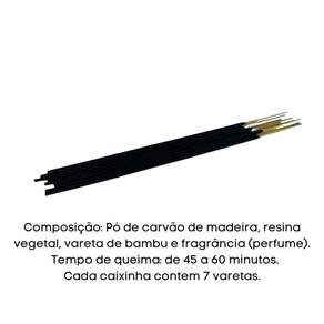 Detalhes técnico: Quantidade de 175 varetas aproximadamente Peso aproximado de 370 g Tempo de queima: de 40 minutos Origem: Índia Composição:pó de carvão de madeira, resina vegetal, vareta de bambu, fragrância perfume.