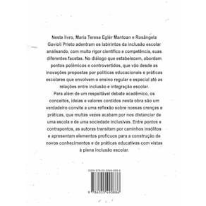 Neste livro, Maria Teresa Eglér Mantoan e Rosângela Gavioli Prieto adentram os labirintos da inclusão escolar analisando, com muito rigor científico e competência, suas diferentes facetas. No diálogo que estabelecem, abordam pontos polêmicos e controvertidos, que vão desde as inovações propostas por políticas educacionais e práticas escolares que envolvem o ensino regular e especial até as relações entre inclusão e integração escolar. Para além de um respeitável debate acadêmico, os conceitos, ideias e valores contidos nesta obra são um verdadeiro convite a uma reflexão sobre nossas crenças e práticas, que muitas vezes acabam por nos distanciar de uma escola e de uma sociedade inclusivas. Entre pontos e contrapontos, as autoras transitam por caminhos insólitos e apresentam elementos profícuos para a construção de novos conhecimentos e de práticas educativas com vistas à plena inclusão escolar.