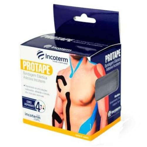 Incoterm Protape Bandagem Elástica Adesiva 5m DESCRIÇÃO:O campo de aplicação é muito grande: da articulação temporomandibular até doenças do pé. Hoje, graças a sua simplicidade, a fita PROTAPE Incoterm é amplamente utilizada tanto por pessoas comuns quanto por atletas de alto rendimento.AÇÃO/ATIVOS:? Cola acrílica hipoalergênica;? Não contém látex;? Não possui em sua composição;? Elasticidade semelhante a da pele, possibilita transpiração normal dos poros, proporciona conforto e flexibilidade;? Resistente à água, pode ser durante o banho e em qualquer atividade aquática;? Auxilia no aumento do desempenho físico; ? Corrige a função muscular e alterações articulares;? Fornece suporte aos músculos, estimulando e inibindo a contração muscular;? Melhora a circulação sanguínea e linfática, sendo eficaz na absorção de edemas e hematomas;? Guia para recortes? Durabilidade na pele, de 3 a 4 diasMODO DE USAR:Aplique em um dos lados da coluna (bem rente à ela), sem aplicar tensão; 4 ? Com a base aplicada, remova o restante do papel de proteção do adesivo até a outra extremidade da fita e aplique 100% de tensão, reduzindo a 20% de tensão.ESTE ANÚNCIO CONTÉM: 01 UNIDADE DE INCOTERM PROTAPE BANDAGEM ELÁSTICA ADESIVA 5MIncoterm Protape Bandagem ElÃstica Adesiva 5m
