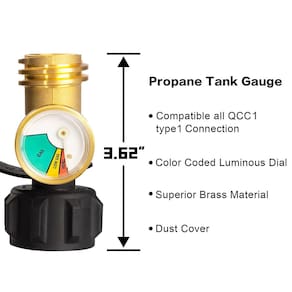 DOZYANT Indicador de nível de medidor de tanque de propano, detector de vazamento, medidor de pressão de gás universal para trailer, cilindro, churrasqueira a gás, aquecedor e mais eletrodomésticos - - Compatível com todos os aparelhos com uma conexão QCC1/Tipo 1, este medidor é adequado para tanques de propano que variam de 2,3 kg a 18 kg. Nota: Este produto não é adequado para tanques de propano que excedam 18 kg - Estrutura de latão 100% sólido resistente a intempéries, arranhões, amassados e corrosão. Este medidor oferece uma leitura estimada em vez de uma medida exata de quando seu tanque de propano vai acabar. É importante observar que a temperatura afeta a pressão: em clima quente, a pressão aumenta, enquanto no clima frio diminui. Como resultado, a mesma quantidade de propano pode exibir níveis variados no medidor do medidor. Esta ferramenta oferece uma maneira conveniente de monitorar seu uso de propano e planejar recargas adequadamente, mantendo você preparado para qualquer estação. - Monitora o nível de combustível sem remover o tanque. Mostrador codificado por cores para permitir que você veja rapidamente quando seu nível de propano está baixo. - Este medidor de gás de tanque de propano pode ser trabalhado com cilindros de tanque de propano, regulador de propano com mangueira e adaptador de propano. Funciona quando você liga o propano, ele reagirá rapidamente mostrando a pressão. - Vem com capa contra poeira. Sem necessidade de ferramentas e fácil de instalar com aderência no calcanhar para apertar. Ótimo para usar churrasqueira a gás, aquecedor, defumador, fogão de acampamento, lanterna, churrasqueira de mesa, mesa de fogueira, fritadeira de peru e mais aparelhos de propano.