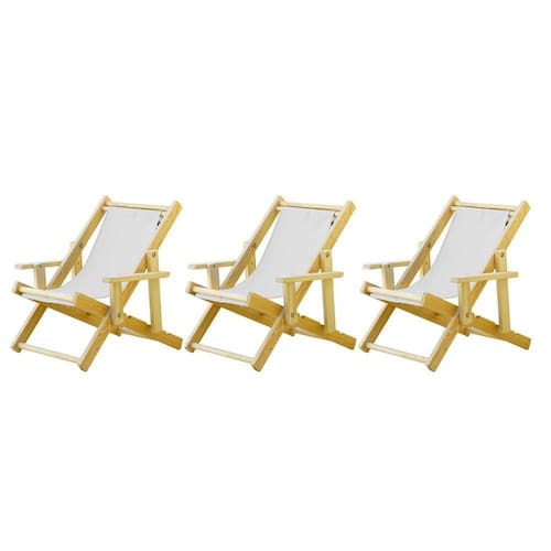 Infantil Kit 3 Cadeira Espreguiçadeira Dobrável-branco 3 ESPREGUIÇADEIRAS C/B INFANTILSabe aquele final de tarde que você tanto espera para tirar um descanso merecido? Ou aquela viagem para a praia programada a meses com a família? Pois é, nossas cadeiras espreguiçadeira serve exatamente para esses momentos, com várias opções de cores, os tecidos além de charmosos são hidro-repelentes e se adequam a qualquer ambiente, facilmente removíveis para higienização.Estrutura 100% de madeira maciça de ótima qualidade, a espreguiçadeira é totalmente dobrável e reclinável (4 posições de ângulo), com descanso para braço, sendo possível montar invertida sem o encosto de braço, perfeita para seu lazer em todos os ambientes, esse é o item que definitivamente não pode faltar na vida de quem de fato, quer aproveitar bons momentos! Medidas Cadeira Espreguiçadeira Infantil:Altura 1: 74,5 cm;Altura 2: 64 cm;Altura 3: 51 cm;Profundidade: 66 cm.Dimensão aproximada total:Comprimento: 64 cm;Largura: 56 cm;03 Níveis de Regulagem de Altura;Tecido Reforçado;Fabricada em Madeira Maciça Pinus;Peso aproximado: 5,5 Kg;Suporta aproximadamente 70 kg;Cor da Madeira: ;Informações Adicionais:Garantia: 90 dias contra defeitos de fabricação.Acompanha 2 cadeiras Obs. A cor pode variar da foto conforme a tonalidade da madeira e iluminação.. !!