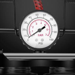 Cilindro Duplo Selado: Garante inflagem rápida e com alta pressão, economizando tempo e esforço; Pedal Ergonômico: Design confortável para uso prático e eficiente; Tanque Duplo: Maior capacidade de compressão para desempenho superior; Manômetro com Lente de Acrílico: Permite acompanhar a pressão com precisão durante a inflagem; Mangueira de Borracha Revestida: Oferece maior durabilidade e flexibilidade. Especificações Técnicas: