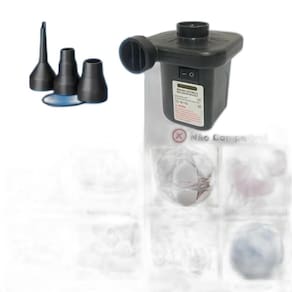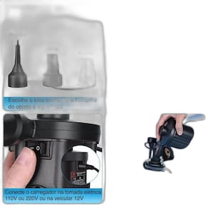 Inflador compacto para piscinas e boias - ideal para viagens Bomba pneumatica - infla e esvasia - 3 bicos adaptadores - 1 fonte 110-240v - 1 adaptador veicular Perfeito para viagens, acampamentos ou uso domestico Esse modelo de bomba elétrica é ideal para facilitar a sua vida. Para inflar e desinflar boias, botes, balões e colchões com alto volume de ar. Possui alto fluxo de ar e acompanha 3 bicos adaptadores diferentes para os mais diversos tipos de infláveis, enche e esvazia apenas trocando o fluxo de ar. É um aparelho multifuncional que pode ser em uma tomada 100-240v ou encaixado na entrada 12v do carro. Marca: Não Informado