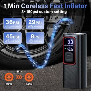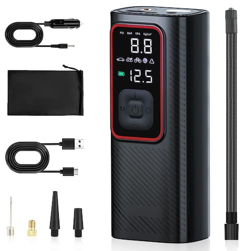 Em relação à inflação do pneu kesfferch : Durante o processo de inflação, devido ao princípio de funcionamento especial da máquina, a mangueira de ar gerará uma temperatura relativamente alta, o que é um fenômeno normal encontrado em todas as bombas de enchimento no mercado. Já aplicamos tratamento antiqueimaduras na mangueira de ar, mas para garantir a segurança dos usuários, não diretamente com a pele com a mangueira de ar. Há um manual do produto dentro da embalagem. Para alguns problemas comuns, consulte a explicação no manual. Se você não entender o uso ou tiver problemas de qualidade com o produto, com nosso e-mail pós-venda em tempo hábil. Estamos dedicados a atendê-lo - Compressor de ar portátil para inflador de pneu - Componentes incluídos: Cone de bocal geral - Peso do item: 0,8 kg