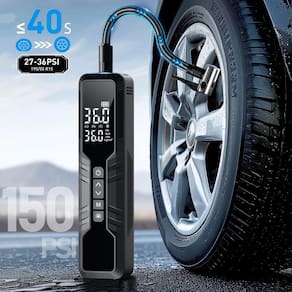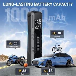 Compressor de ar portátil pro inflador de pneu inflador sem fio bomba de bicicleta alimentada por bateria para carro recarregável motocicleta sem fio mini moto pequena 120 psi 150 carros inflador pressão elétrica móvel inteligente e inflador com medidor operado bicicleta automática operada - Operação portátil e simples: bomba de ar pequena e compacta para sua mochila, porta-malas e porta-luvas. Fácil de usar, selecione o modo de enchimento e o valor de pressão de ar que você precisa com o botão "+" "-", pressione e segure o botão "M" para confirmar e inflar, o que o torna perfeito para emergências, atividades ao ar livre e viagens de acampamento - Precisão e parada automática: a bomba de ar portátil para pneus de carro está equipada com um medidor de pressão embutido e uma tela LCD, fornecendo monitoramento preciso de pressão em tempo real. Possui uma conveniente pressão de pneu predefinida e função de desligamento automático, permitindo o enchimento despreocupado do pneu. Ele para automaticamente quando a pressão desejada do pneu é atingida, evitando o excesso de enchimento e garantindo desempenho e segurança ideais do pneu. - Medição de pressão mais precisa: a bomba de ar elétrica automática está equipada com a mais recente tecnologia de chip de teste de pressão preciso, o medidor de pressão preciso reduz o problema de pressão instável do pneu e inflação instável, proporcionando o efeito de inflação mais confortável e rápido. - Uso versátil: a bomba de enchimento de pneu vem com quatro tipos de bicos de ar e uma mangueira de ar de nylon. Use a válvula padrão dos EUA para carros, SUVs, motocicletas e pneus de bicicleta, o adaptador de agulha é perfeito para inflar equipamentos esportivos como bolas de basquete, e o adaptador geral funciona bem para anéis de natação, almofadas, travesseiros de ar e muito mais. Observação: não é adequado para itens de alto volume, como colchões de ar ou pneus pesados. - Rápido e fácil: alterne facilmente entre unidades de pressão PSI, kPa, BAR e KG/CM com o apertar de um botão; LCD grande fácil de ler; medidor digital de pressão do pneu; lanterna LED embutida para condições de pouca luz; botão esvaziar para diminuir a pressão; mangueira de ar armazena dentro