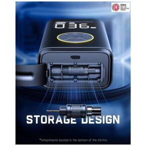 O Fanttik X9 Pro Jetinflate precisa de apenas 1 minuto para encher o pneu de um carro compacto de 30 para 35 PSI. Alcance uma versátil pressão máxima de inflação de 150 PSI, otimizado para carros compactos, motocicletas, SUVs, bicicletas, bolas e outros infláveis. Armazene e transporte com facilidade graças ao design de slot de armazenamento de acessórios próprio, sem se preocupar em perder acessórios. A mangueira e o corpo do X9 Pro são integrados, facilitando o acesso e o armazenamento. Bateria de longa duração com sua bateria embutida de 7,4 V e 2,5 Ah de grande capacidade oferecendo vida útil longa e sistema de resfriamento, pode funcionar continuamente por até 23 minutos sem desligar. Controle fácil com desligamento automático conveniente com seus 4 modos inteligentes, ele atende facilmente a uma variedade de tarefas de inflação. Quando atinge o nível de pressão pré-definido, ele desliga automaticamente, poupando o trabalho de monitoramento constante. Além disso, a tela aprimorada não é apenas maior, mas também possui excelente legibilidade, mesmo sob a luz solar intensa. Seguro e economizador de energia, não é mais necessário lidar com instalações complicadas de mangueira. Tudo o que precisa fazer é puxar a extremidade amarela da mangueira para ativá-lo e simplesmente empurrá-lo de volta para dentro do corpo do inflador para desligá-lo. Além disso, se ficar inativo por 3 minutos, ele desligará automaticamente, evitando ativações acidentais e garantindo uma experiência de usuário mais segura.