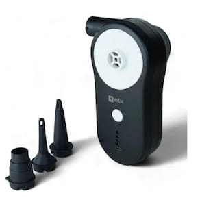 Inflador recarregável USB com vazão de 280 litros por minuto, pressão de 0,58 psi, bateria de 3,7V 4000mAh, tempo de carga de 3 horas e autonomia de 30 minutos. Inclui kit de bicos e cabo USB tipo-C.Vendido e entregue por Olist