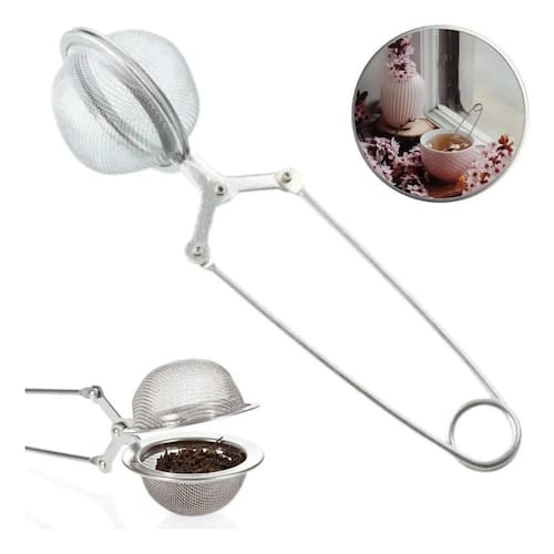 Infusor Em Inox Para Chá Mini Peneira Coador Pinça