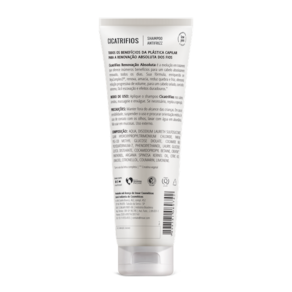 Cicatrifios Shampoo tem, ação antifrizz e redução progressiva de volumes, trata intensamente a fibra capilar para combater a quebra e o frizz.