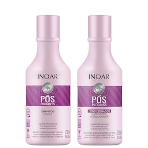 Kit para manutenção de cabelos com escova progressiva. Ajuda a manter a saúde e beleza dos fios, controla seu volume e alinha os cabelos, para um efeito liso duradouro. Diminui o frizz e evita o ressecamento das pontas. Contém