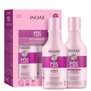Inoar Pós Progress - Kit Duo 250ml Kit para manutenção de cabelos com escova progressiva. Diminui o frizz e evita o ressecamento das pontas.