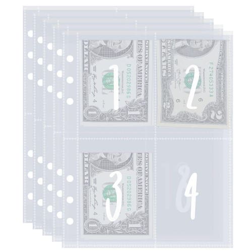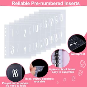 Adequado para fichário A5 de 6 anéis - Tamanho dos insertos: 6,1* 7,7 polegadas, cada tamanho de bolso: 2,5* 3,5 polegadas, serve para todos os fichários A5 padrão de 6 anéis. Ótimos acessórios para encadernação Challenge de 100 envelopes.